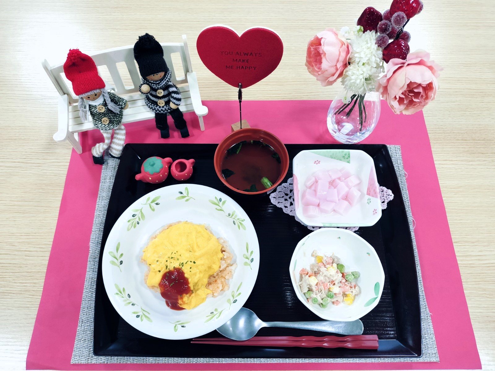 本日の昼食は、バレンタインの特別メニューです😍